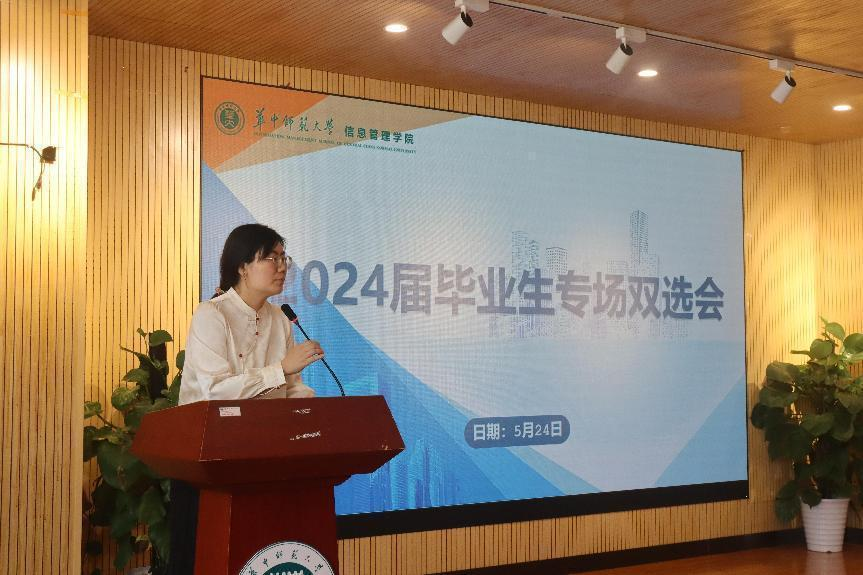 5月24日,信息管理学院2024届毕业生专场双选会在南湖综合楼N10001报告厅举办,合肥我们方田教育科技有限公司、武汉佳诺实业有限公司、凡耕(湖北)互联科技有限公司、上海罗盘信息科技有限公司、作业帮教育科技(北京)有限公司和上海古道商务咨询有限公司等6家单位参加了专场招聘。现场由辅导员蒋可鸣主持,分“企业宣讲”和“现场面试”两个阶段进行。